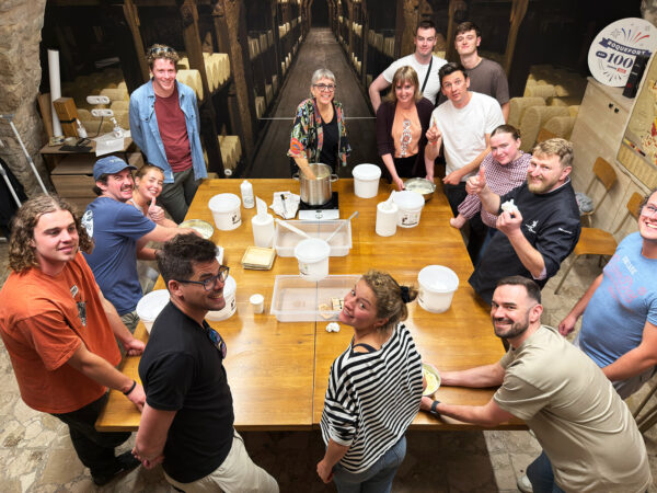 The highlight for many was the cheese-making workshop. Pierre, our enthusiastic fromager, taught us how to make a mild Tomme and even a batch of salted butter. Both were sampled on fresh bread, paired with wine and even more cheese.’