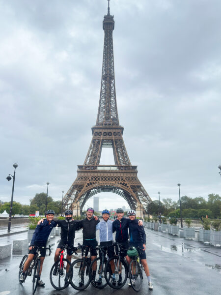 Cyclists arrived outside the Eiffel Tower