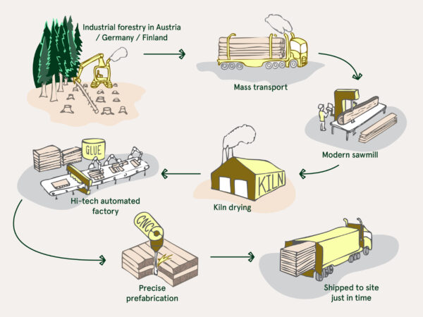 With many thanks to Stora Enso, KLH Massivholz and KLH Sustainability for their insightful conversations, which helped to create this piece.